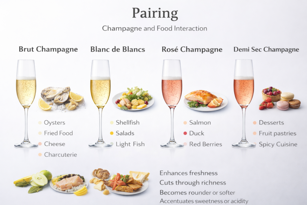 A successful pairing elevates both the Champagne and the dish without one dominating the other.
